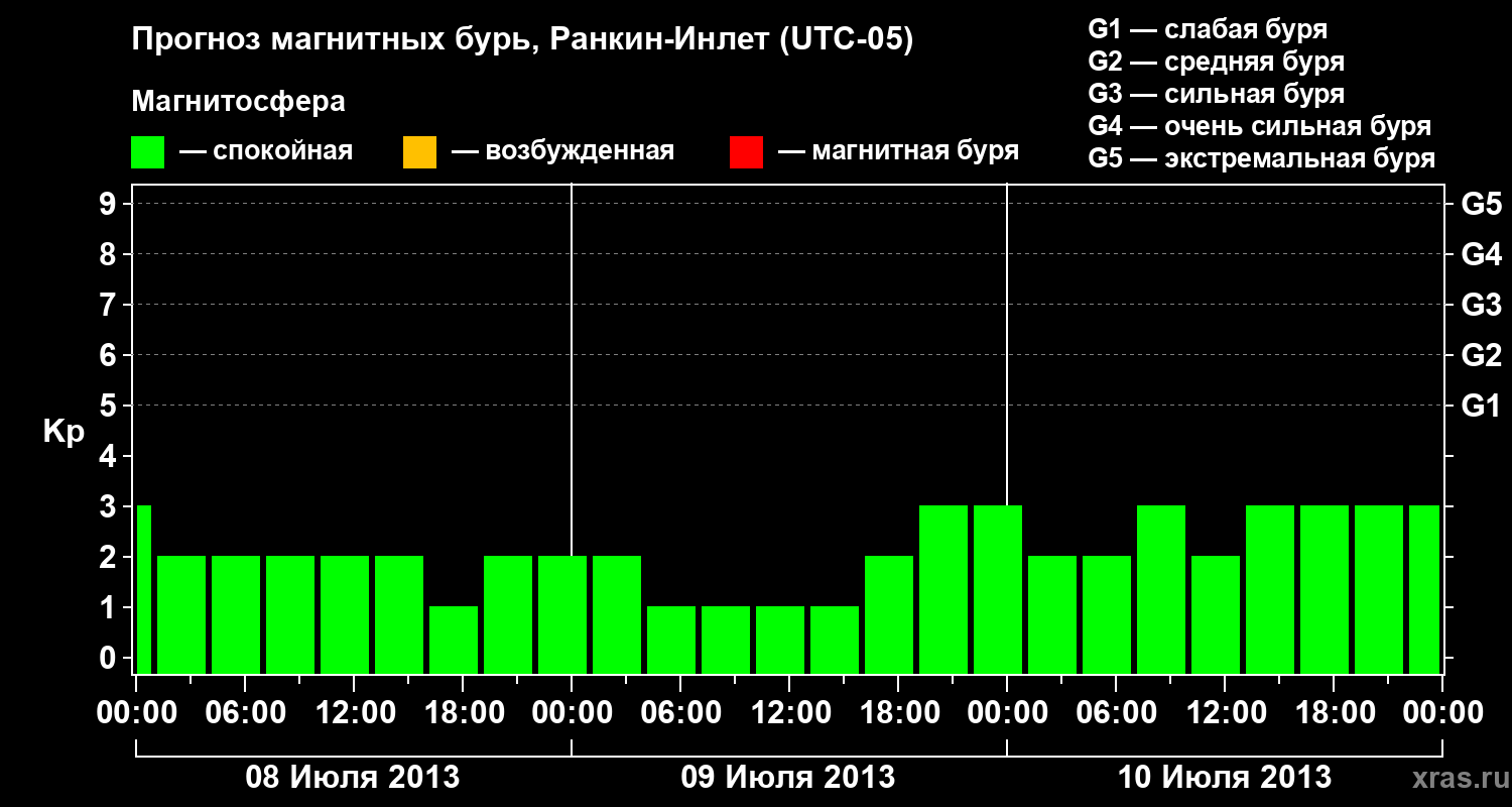 Прогноз магнитных бурь в Ранкин-Инлете — 8 июля 2013 года