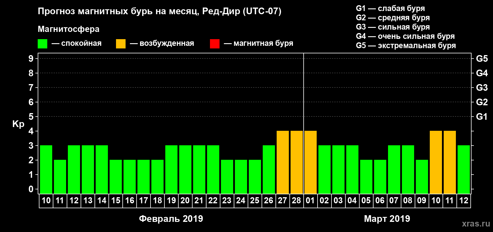 Прогноз магнитных бурь в Ред-Дире — 10 февраля 2019 года