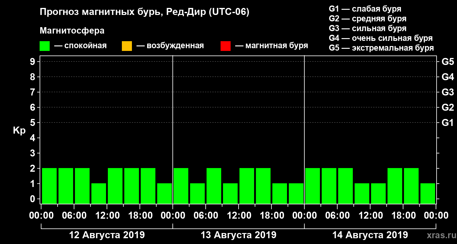 Прогноз магнитных бурь в Ред-Дире на 12 августа 2019 года