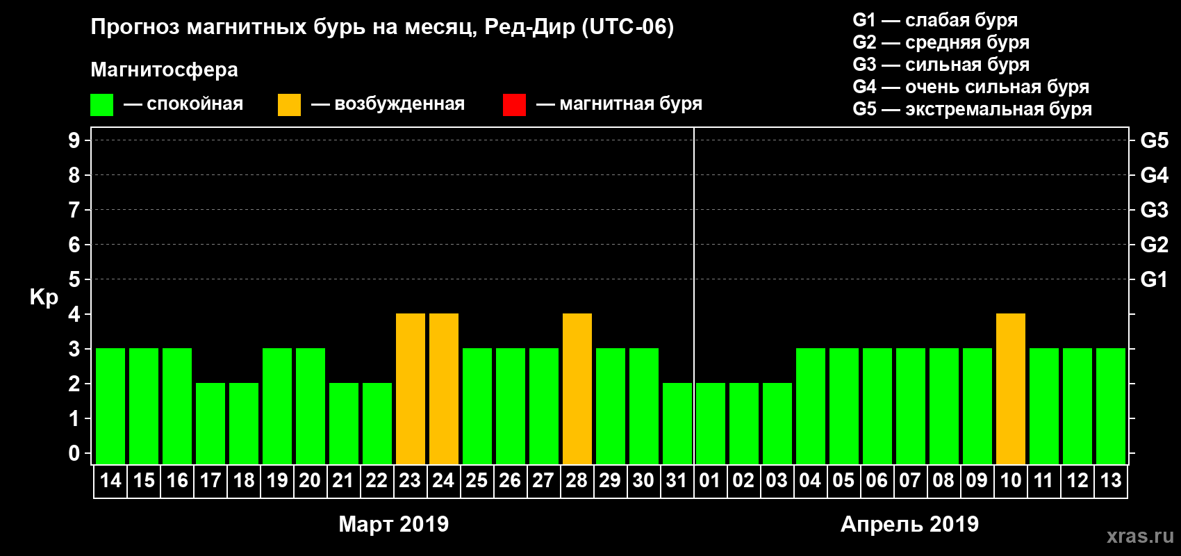Прогноз магнитных бурь в Ред-Дире — 14 марта 2019 года