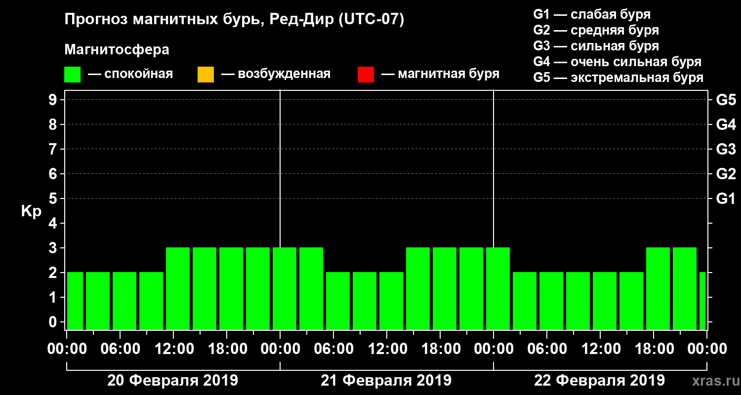 Прогноз магнитных бурь в Ред-Дире на 20 февраля 2019 года