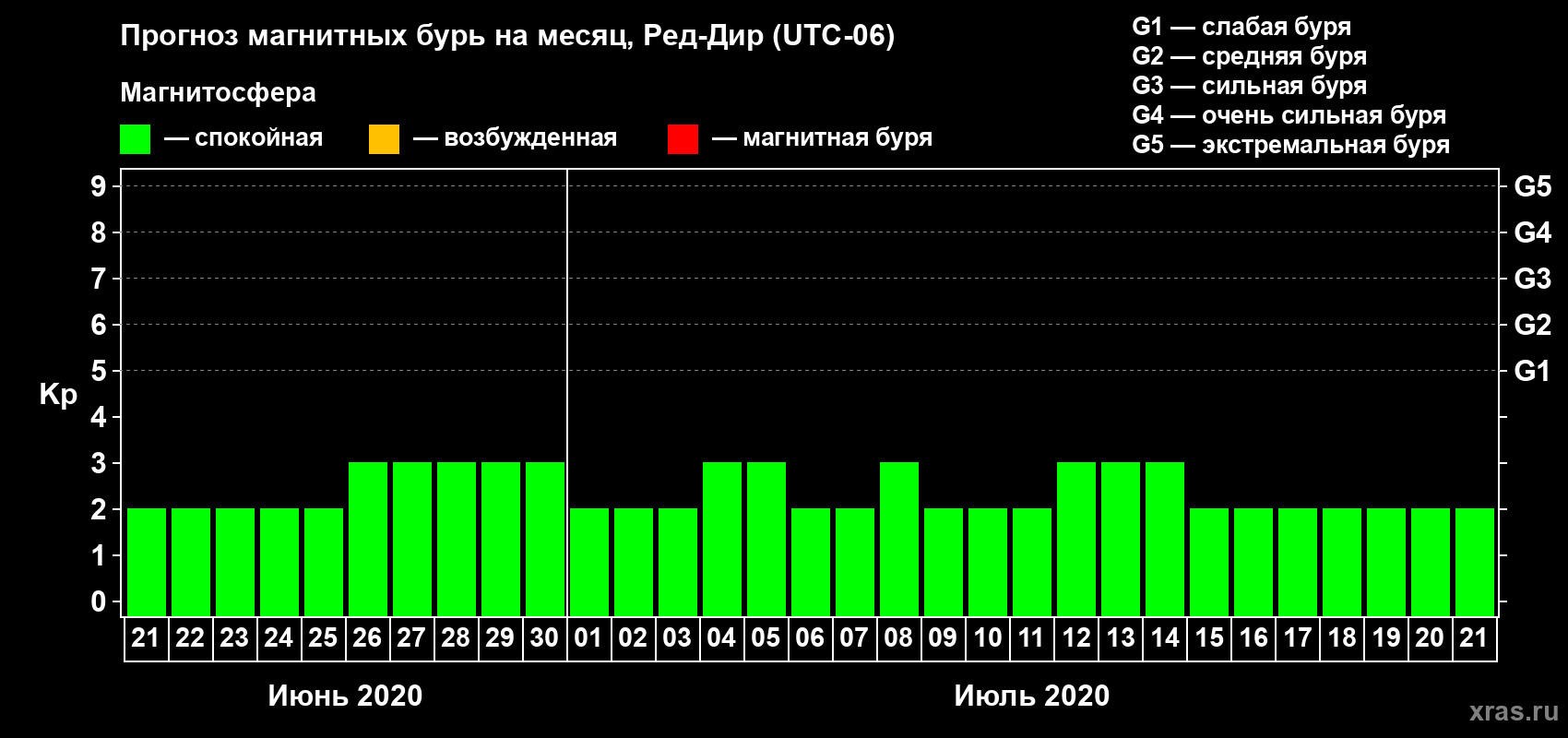Прогноз магнитных бурь в Ред-Дире — 21 июня 2020 года