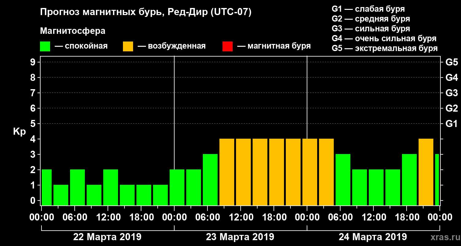 Прогноз магнитных бурь в Ред-Дире на 22 марта 2019 года