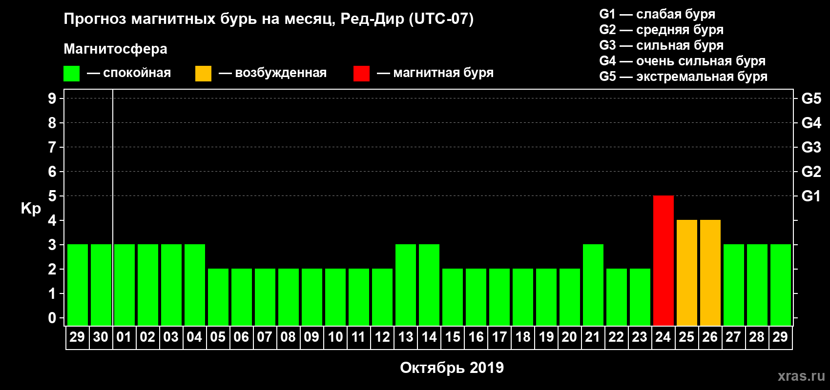 Прогноз магнитных бурь в Ред-Дире — 29 сентября 2019 года