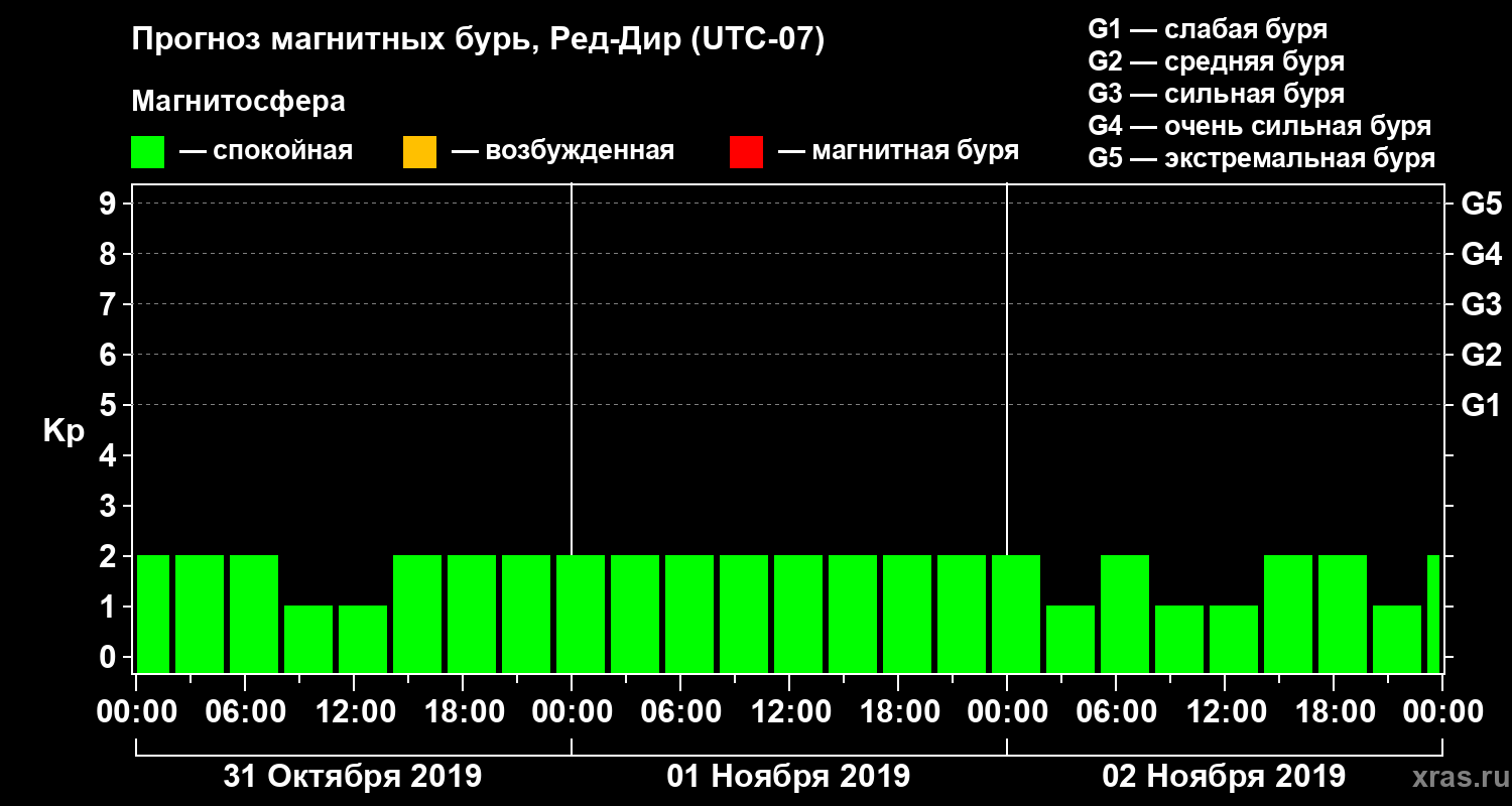 Прогноз магнитных бурь в Ред-Дире — 31 октября 2019 года