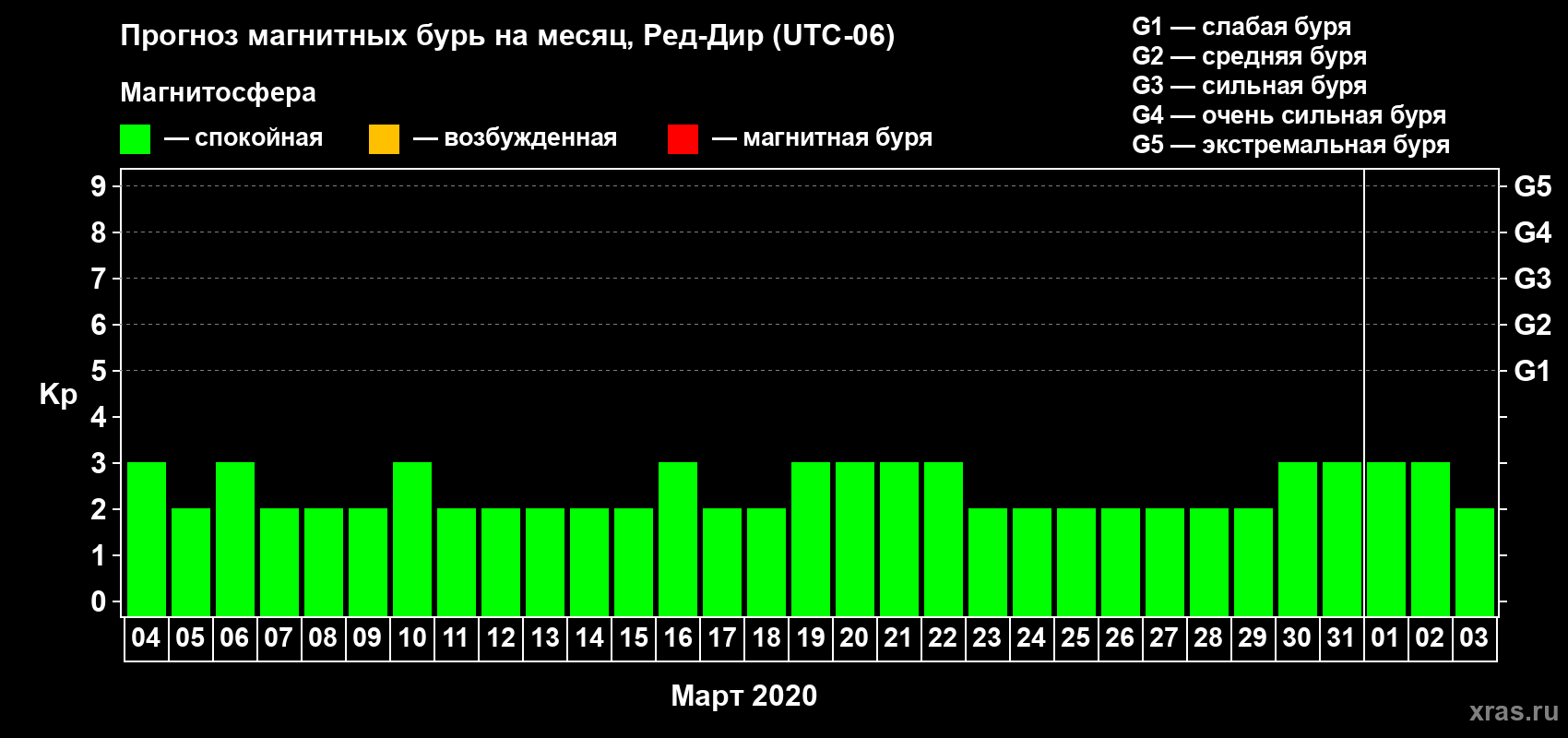 Прогноз магнитных бурь в Ред-Дире на 4 марта 2020 года