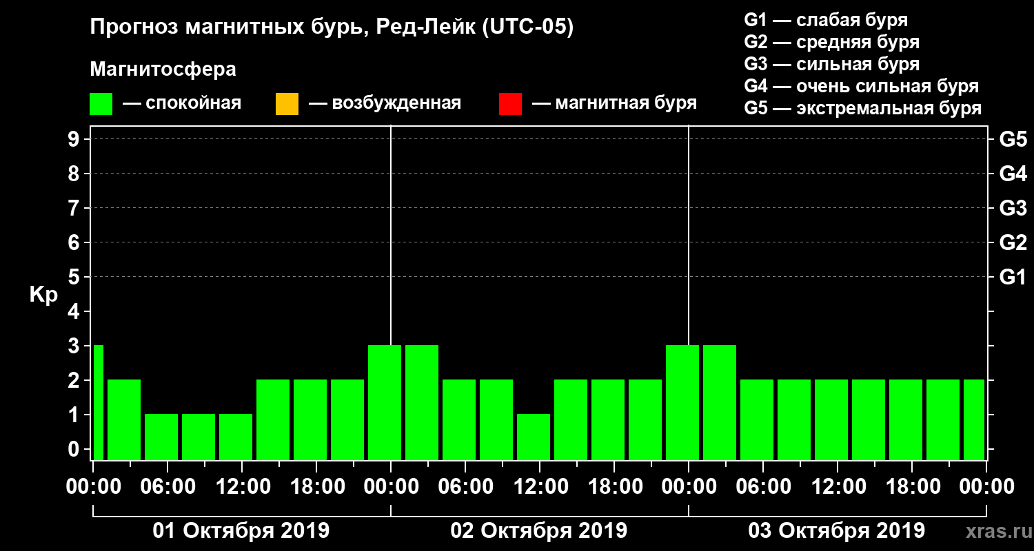 Прогноз магнитных бурь в Ред-Лейке — 1 октября 2019 года