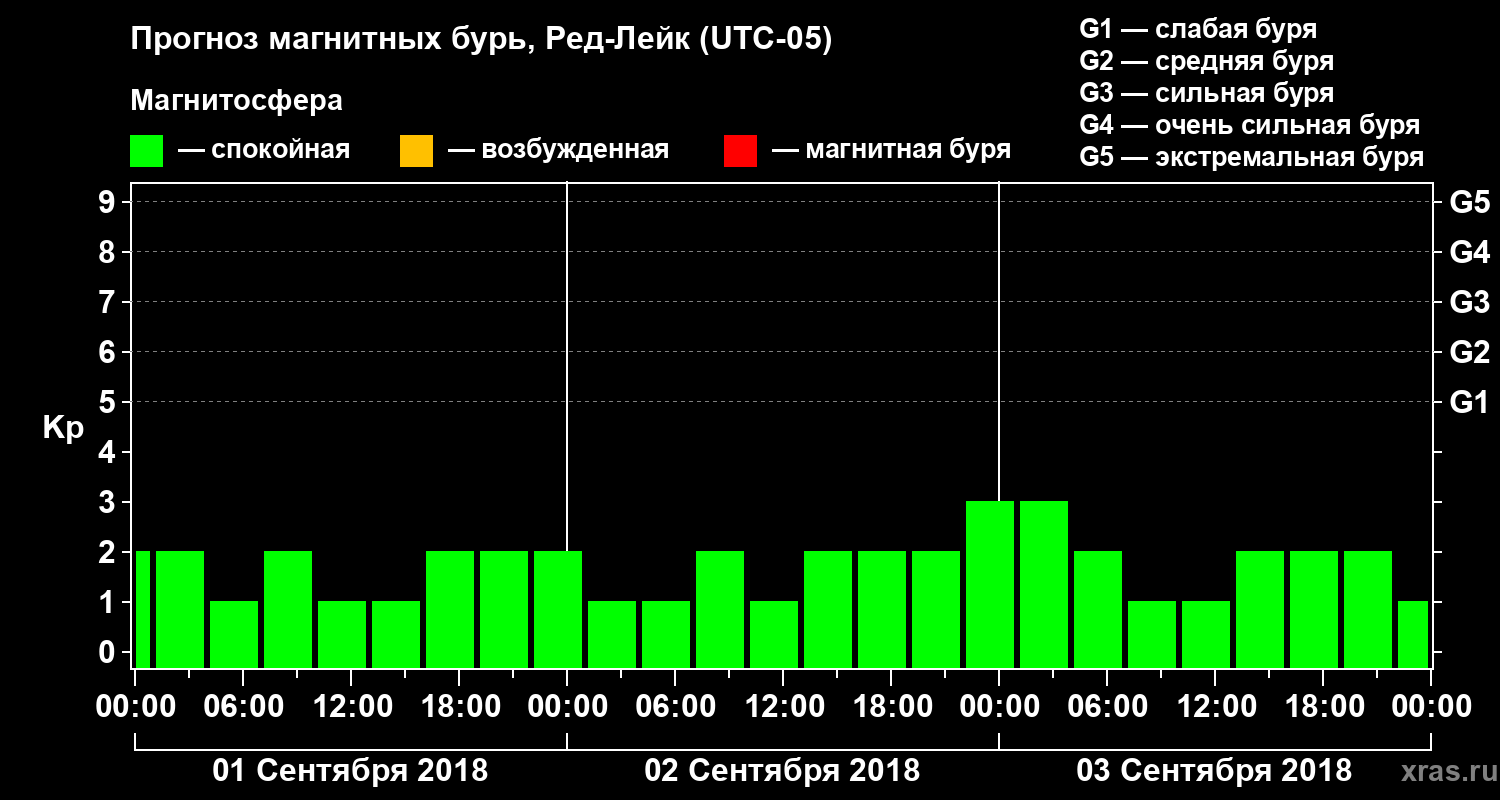 Прогноз магнитных бурь в Ред-Лейке — 1 сентября 2018 года