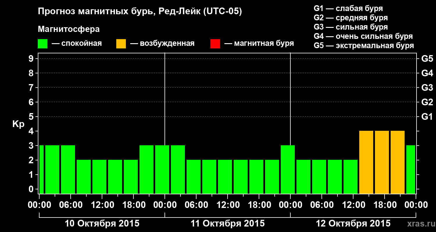 Прогноз магнитных бурь в Ред-Лейке — 10 октября 2015 года