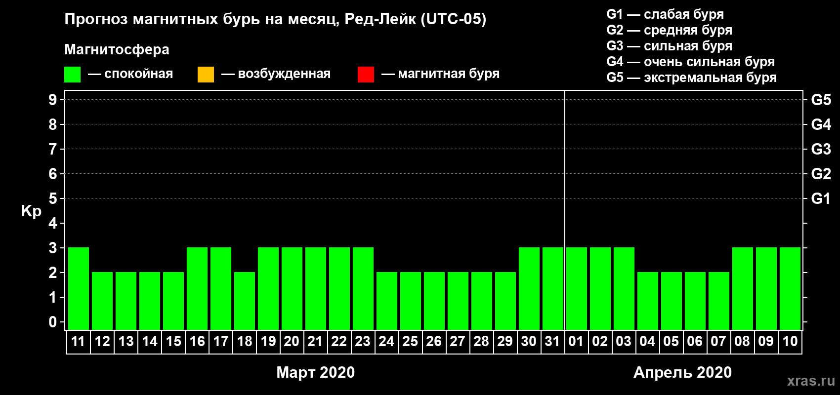 Прогноз магнитных бурь в Ред-Лейке — 11 марта 2020 года