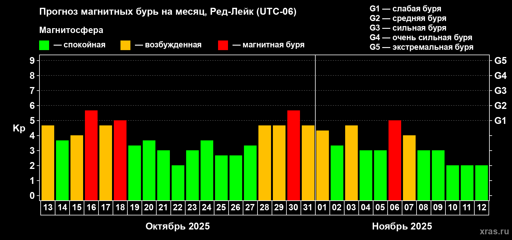 Прогноз магнитных бурь в Ред-Лейке — 13 октября 2025 года