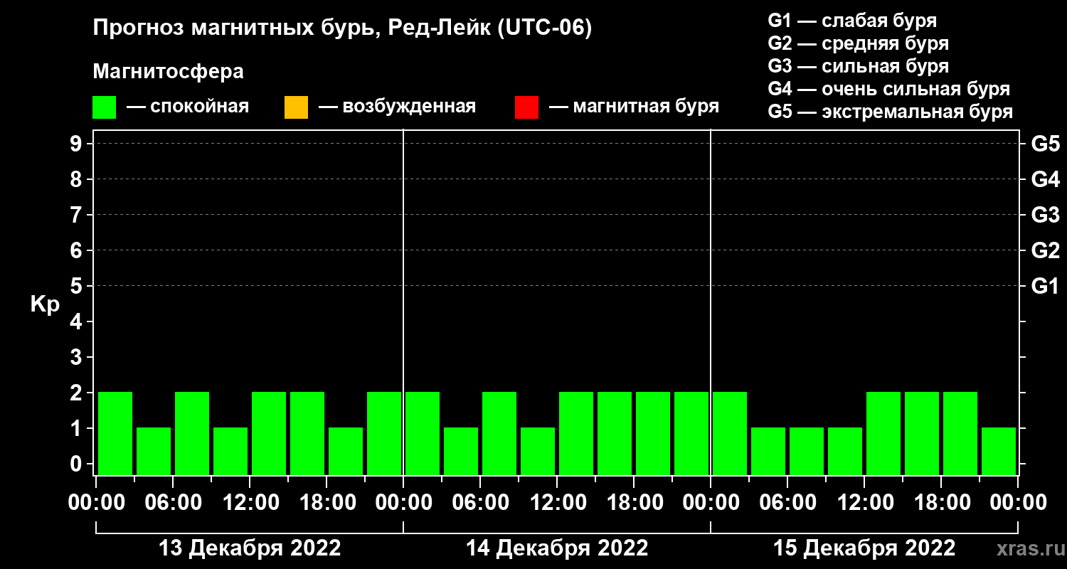 Прогноз магнитных бурь в Ред-Лейке на 13 декабря 2022 года