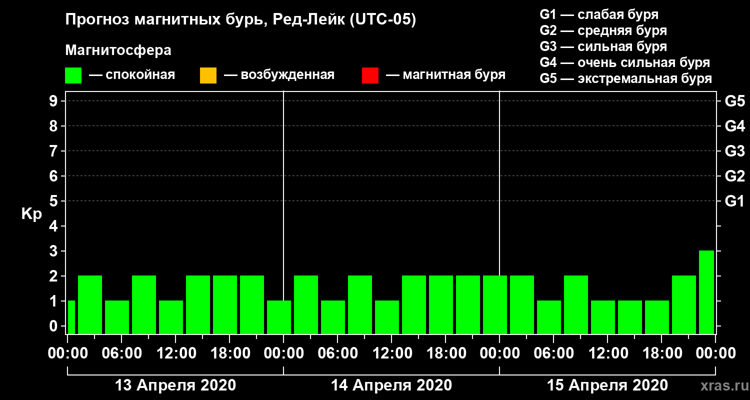 Прогноз магнитных бурь в Ред-Лейке — 13 апреля 2020 года