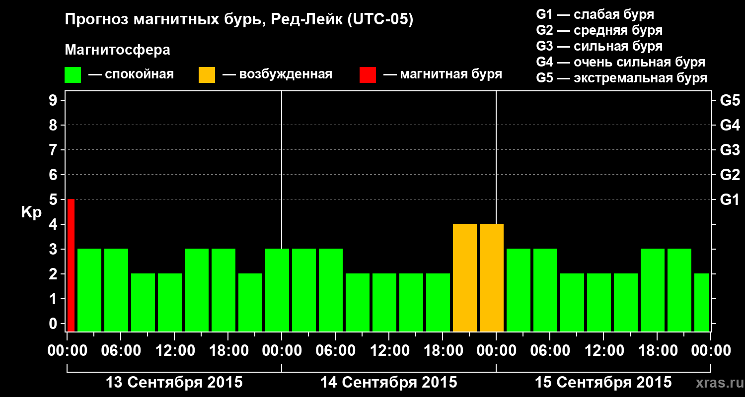 Прогноз магнитных бурь в Ред-Лейке на 13 сентября 2015 года