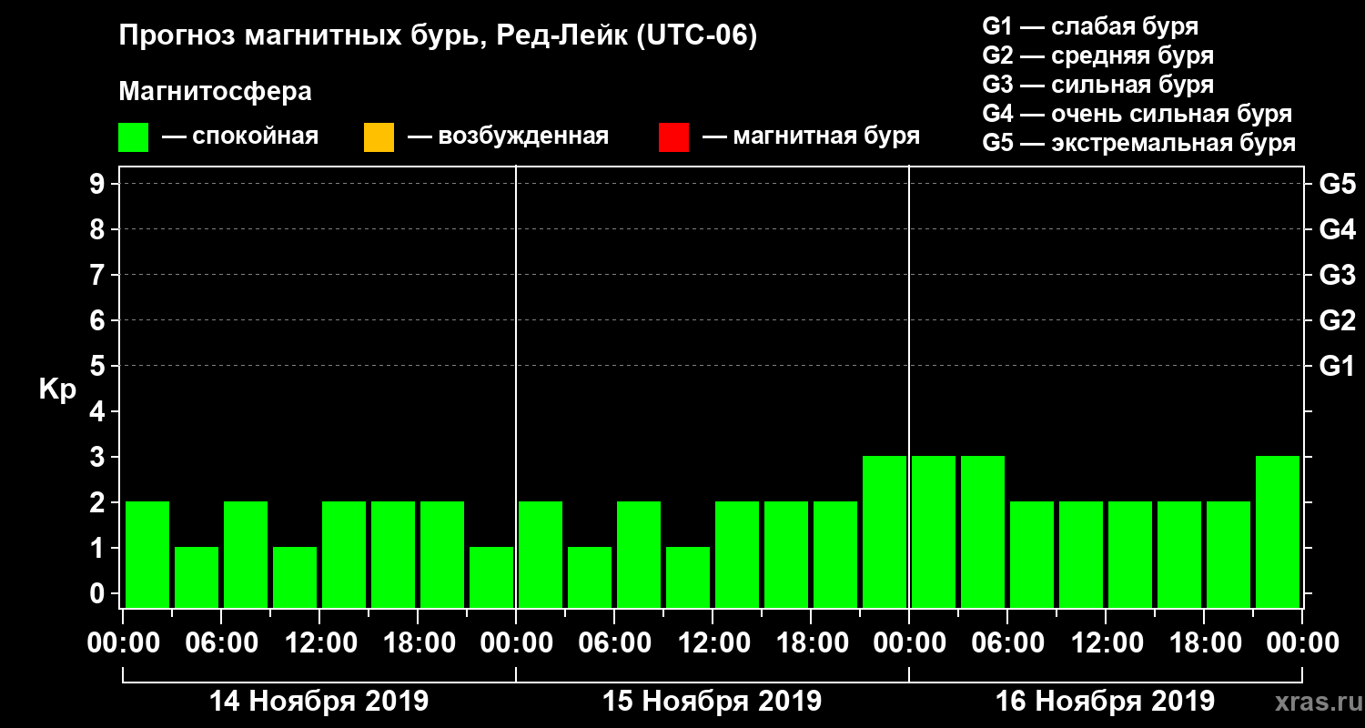 Прогноз магнитных бурь в Ред-Лейке — 14 ноября 2019 года