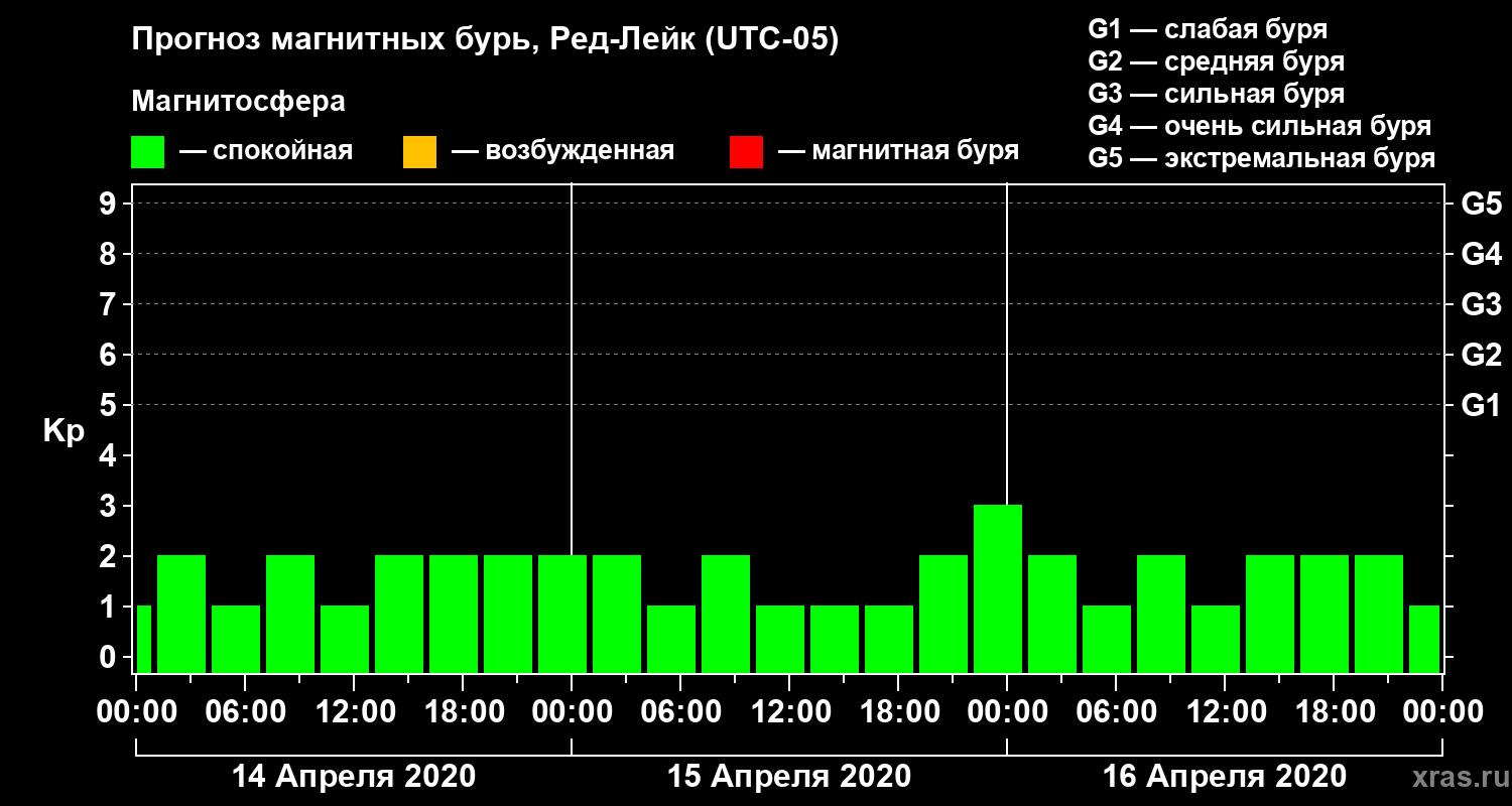 Прогноз магнитных бурь в Ред-Лейке — 14 апреля 2020 года