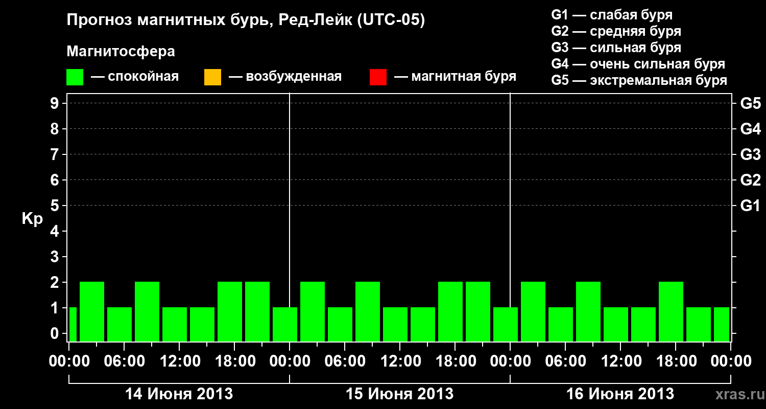 Прогноз магнитных бурь в Ред-Лейке — 14 июня 2013 года