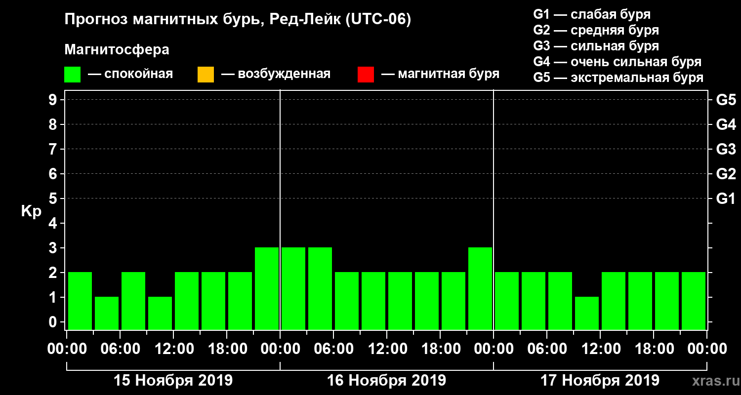 Прогноз магнитных бурь в Ред-Лейке — 15 ноября 2019 года