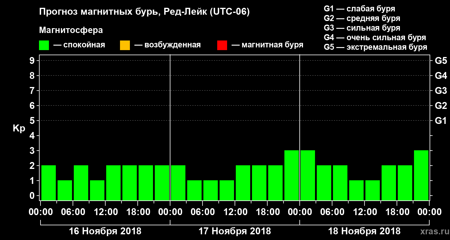 Прогноз магнитных бурь в Ред-Лейке — 16 ноября 2018 года