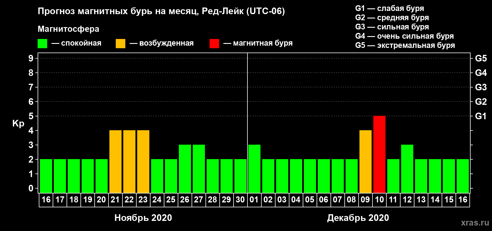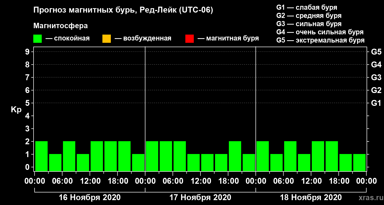 Прогноз магнитных бурь в Ред-Лейке — 16 ноября 2020 года