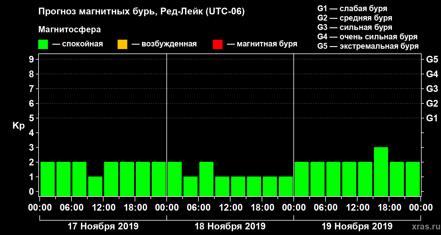 Прогноз магнитных бурь в Ред-Лейке — 17 ноября 2019 года