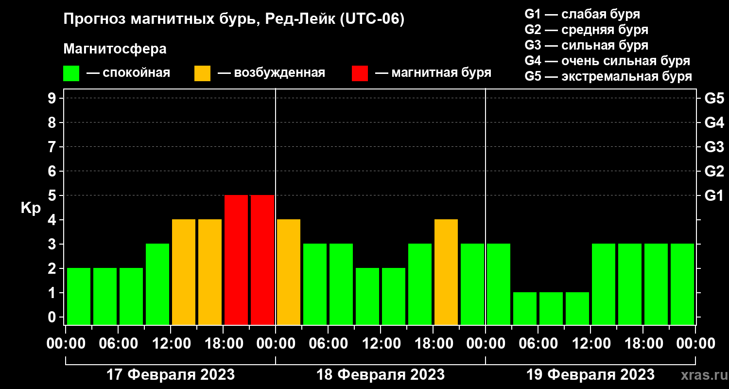 Прогноз магнитных бурь в Ред-Лейке — 17 февраля 2023 года