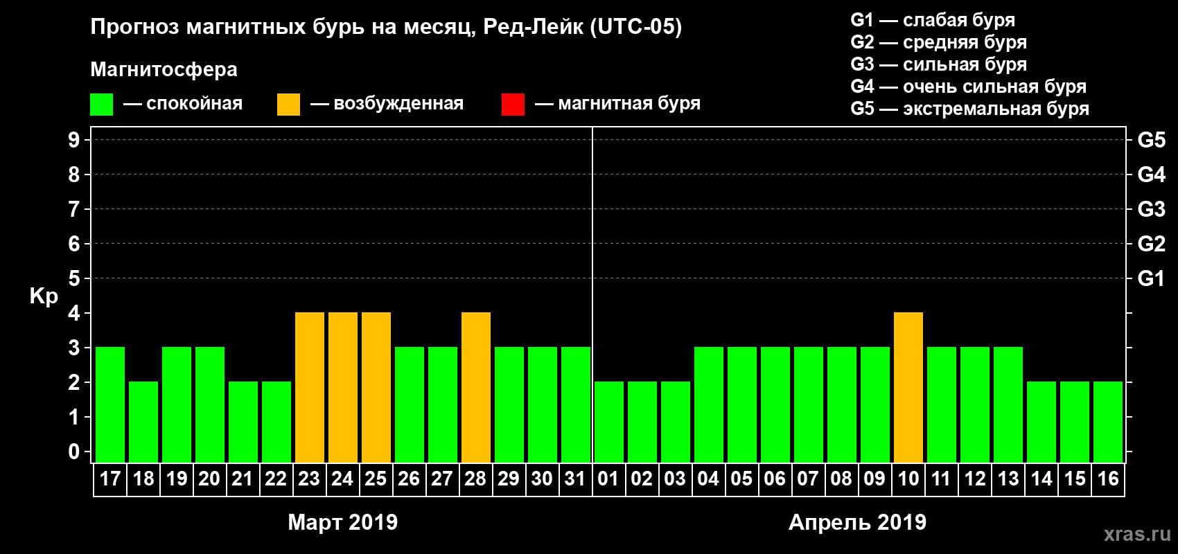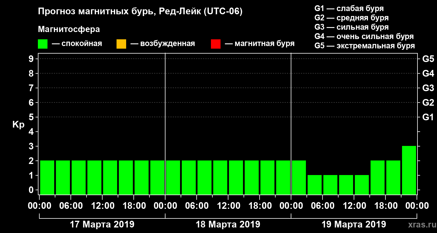 Прогноз магнитных бурь в Ред-Лейке — 17 марта 2019 года