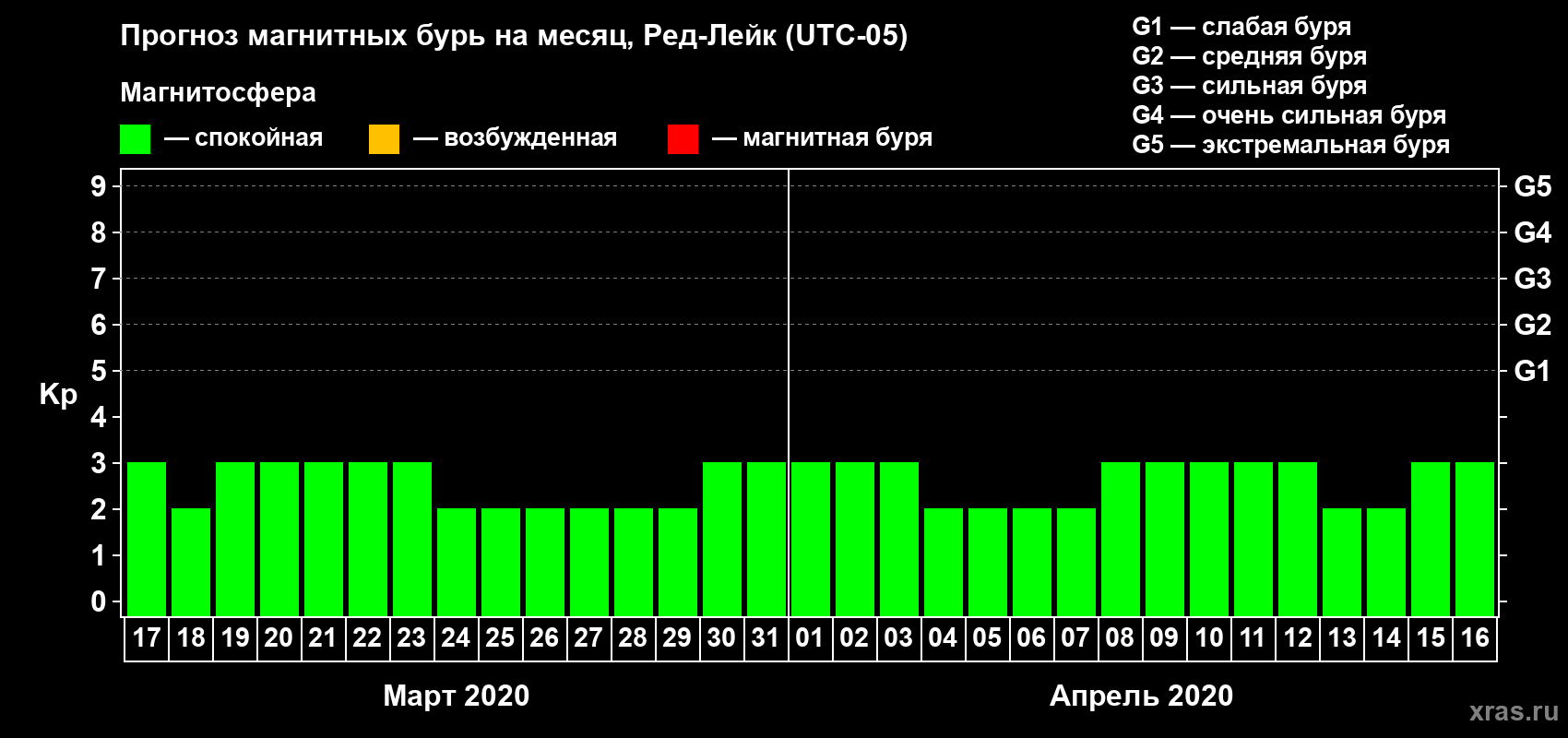 Прогноз магнитных бурь в Ред-Лейке — 17 марта 2020 года