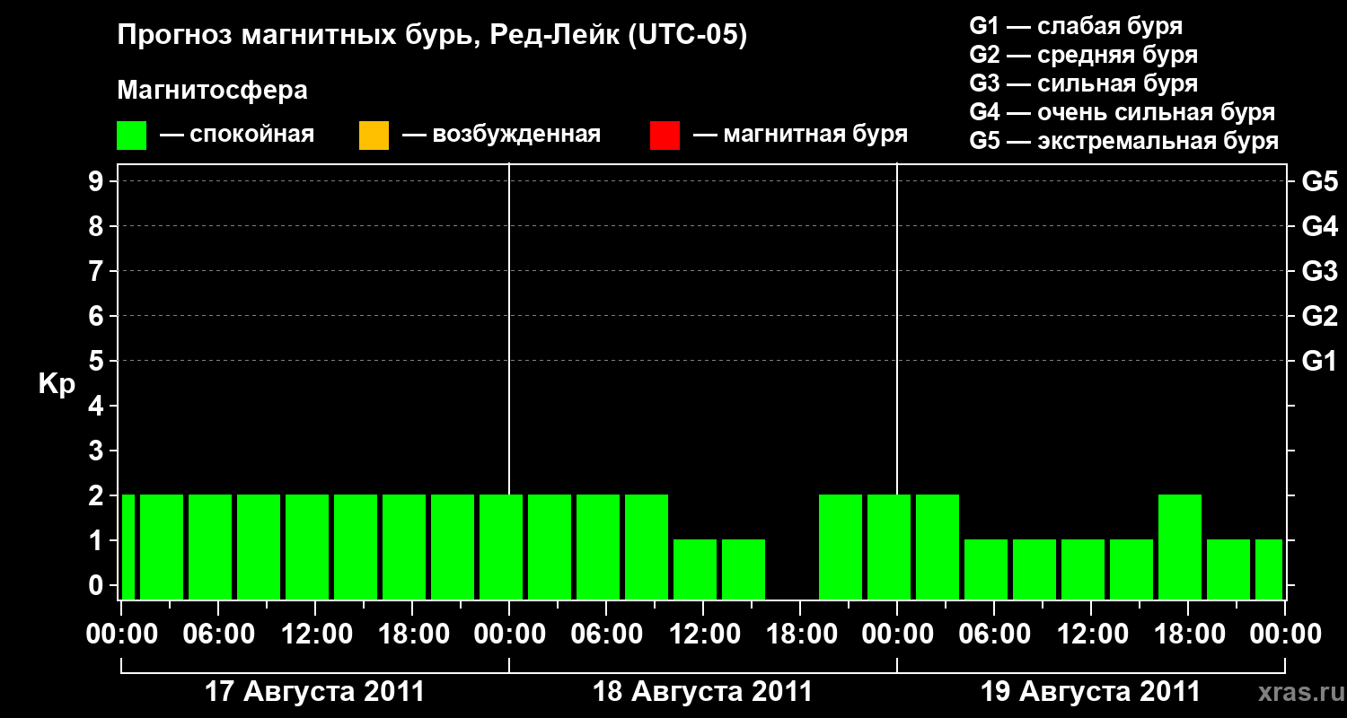 Прогноз магнитных бурь в Ред-Лейке — 17 августа 2011 года
