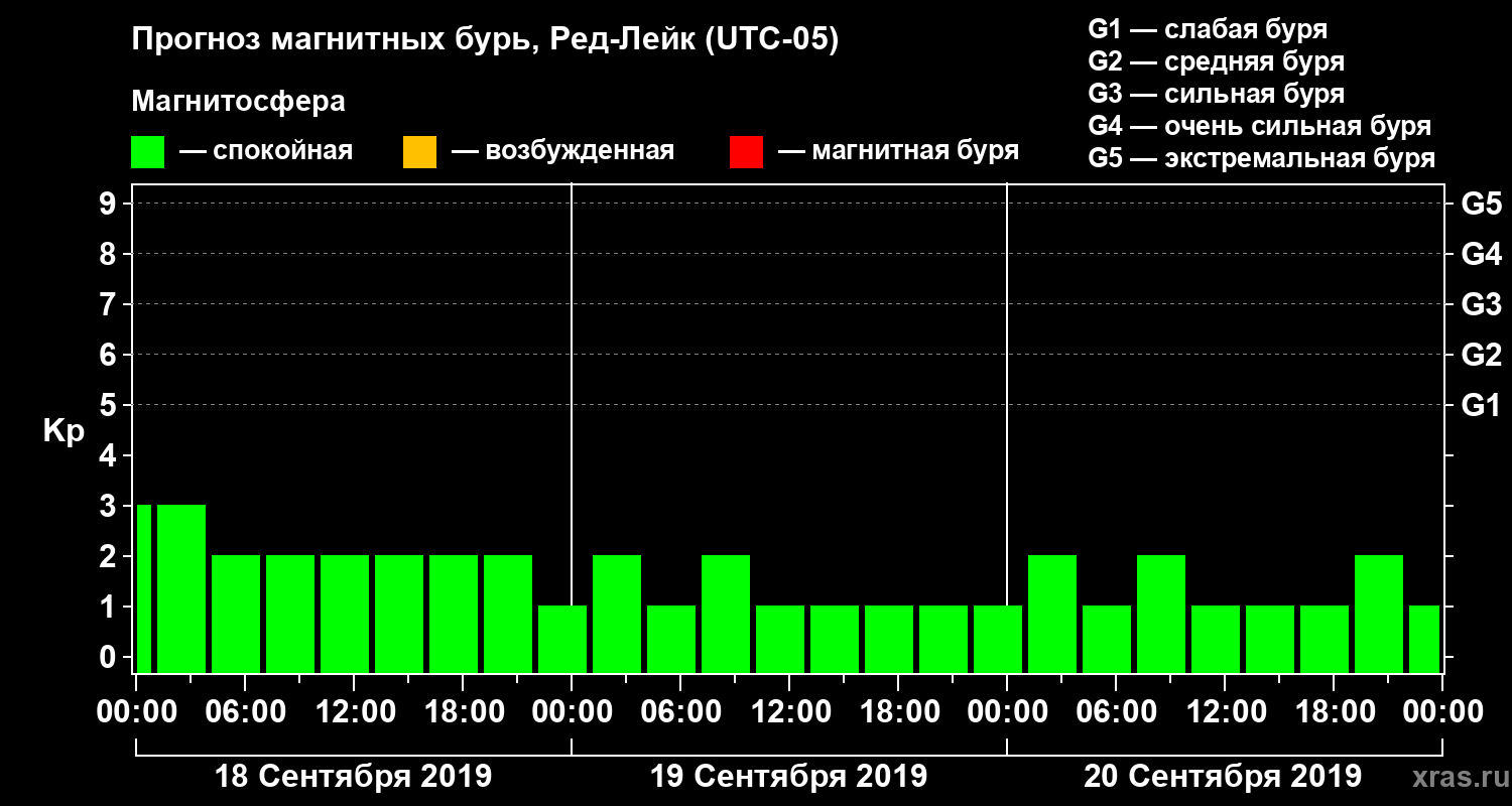 Прогноз магнитных бурь в Ред-Лейке — 18 сентября 2019 года