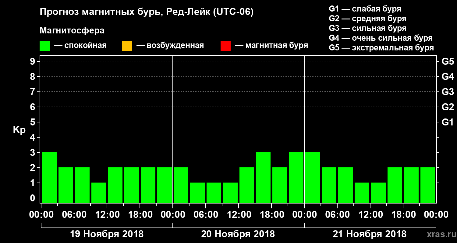 Прогноз магнитных бурь в Ред-Лейке — 19 ноября 2018 года