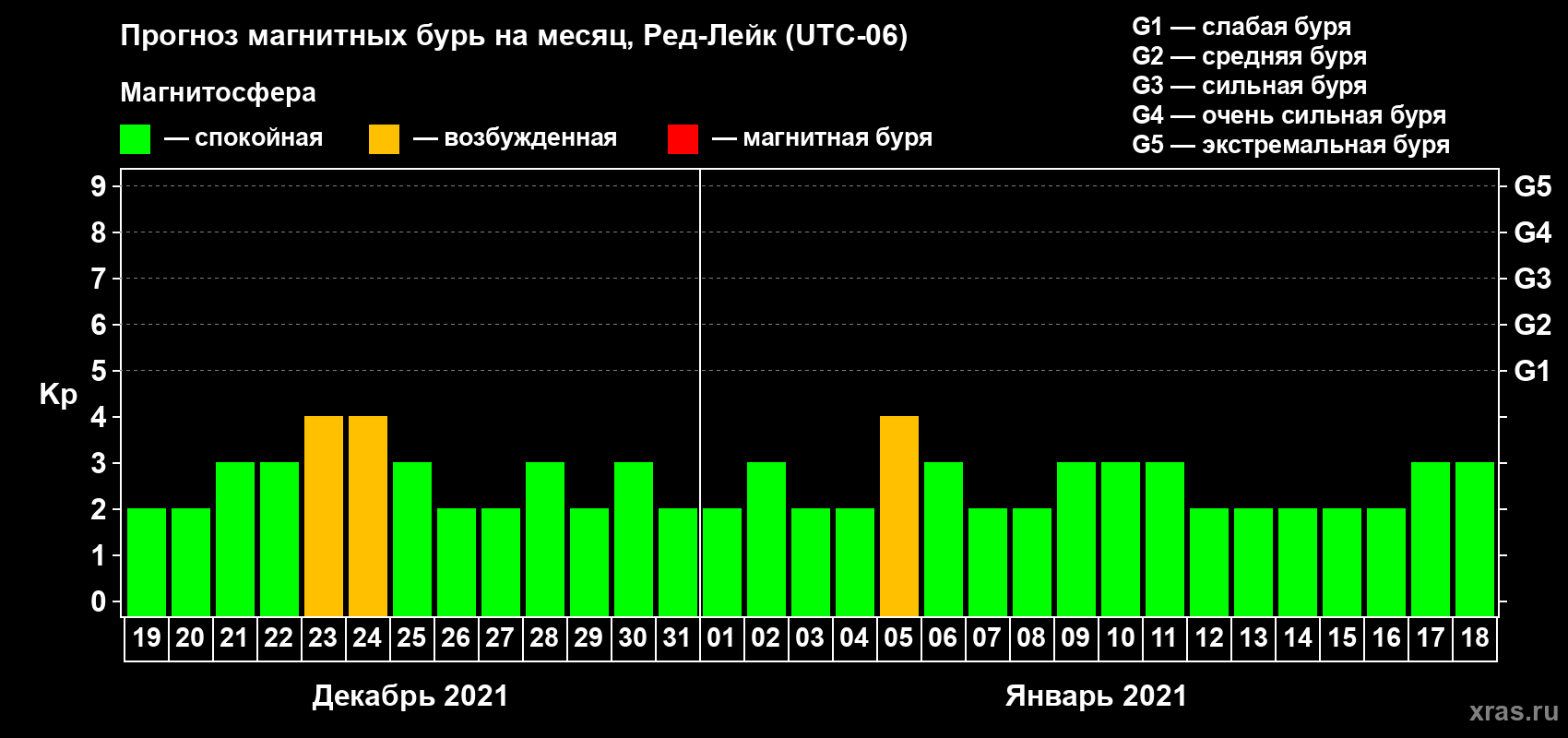 Прогноз магнитных бурь в Ред-Лейке — 19 декабря 2020 года