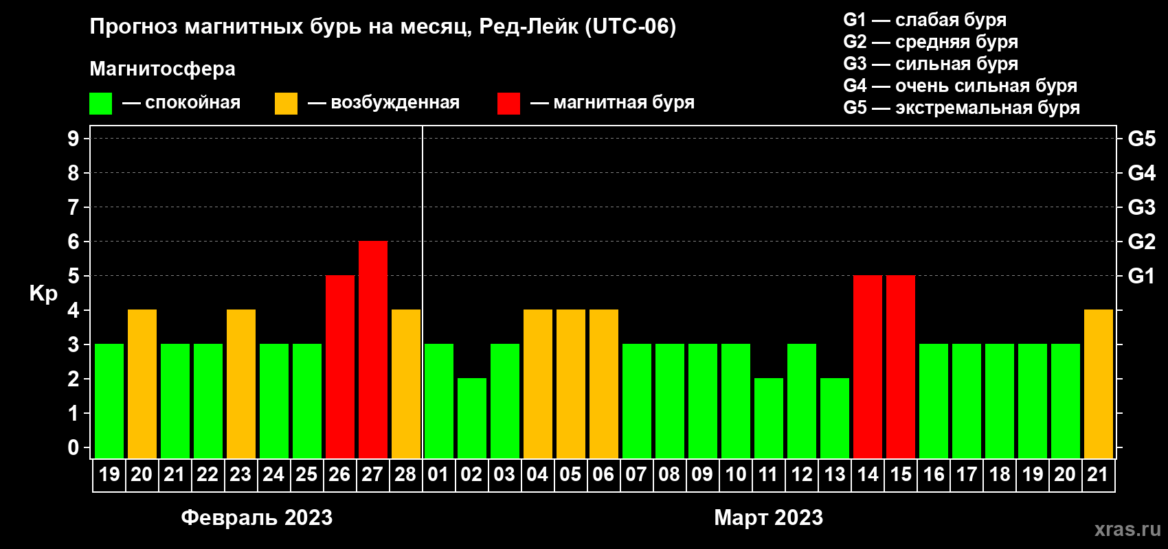 Прогноз магнитных бурь в Ред-Лейке — 19 февраля 2023 года
