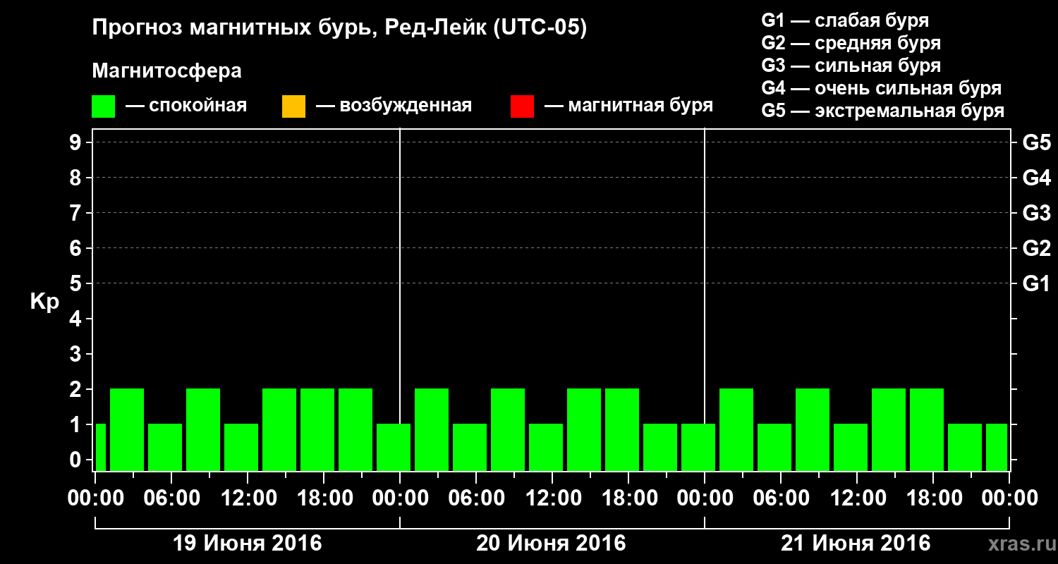 Прогноз магнитных бурь в Ред-Лейке — 19 июня 2016 года