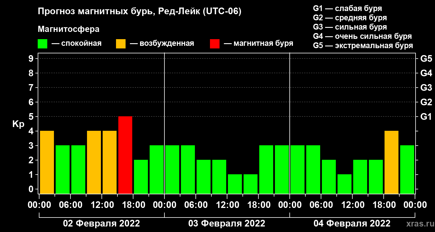 Прогноз магнитных бурь в Ред-Лейке — 2 февраля 2022 года