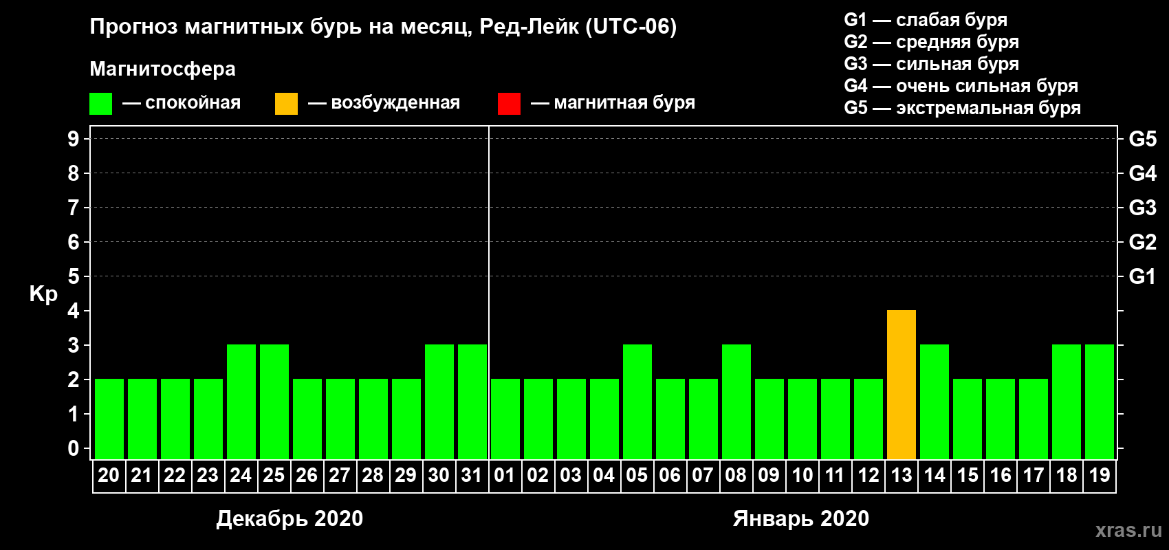 Прогноз магнитных бурь в Ред-Лейке — 20 декабря 2019 года