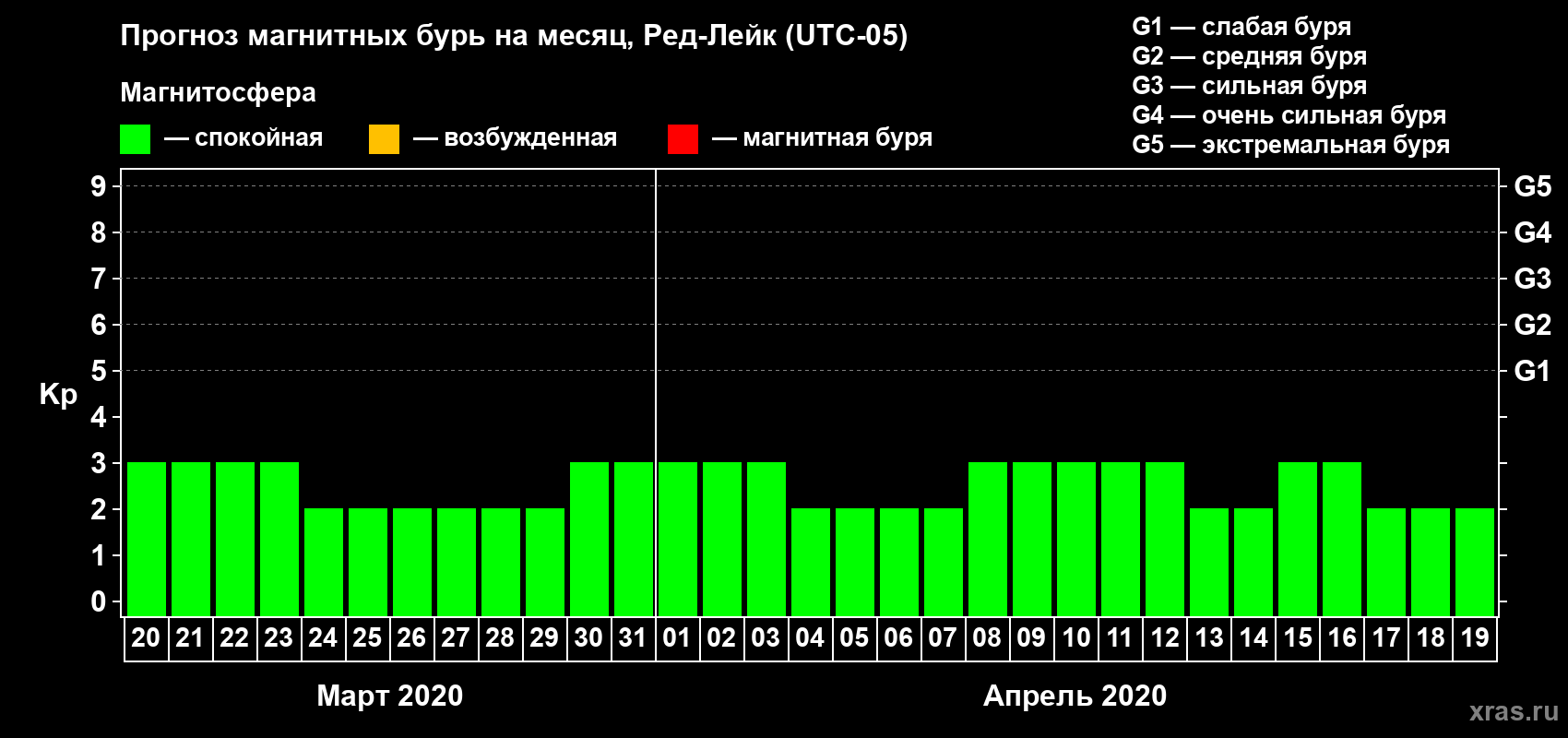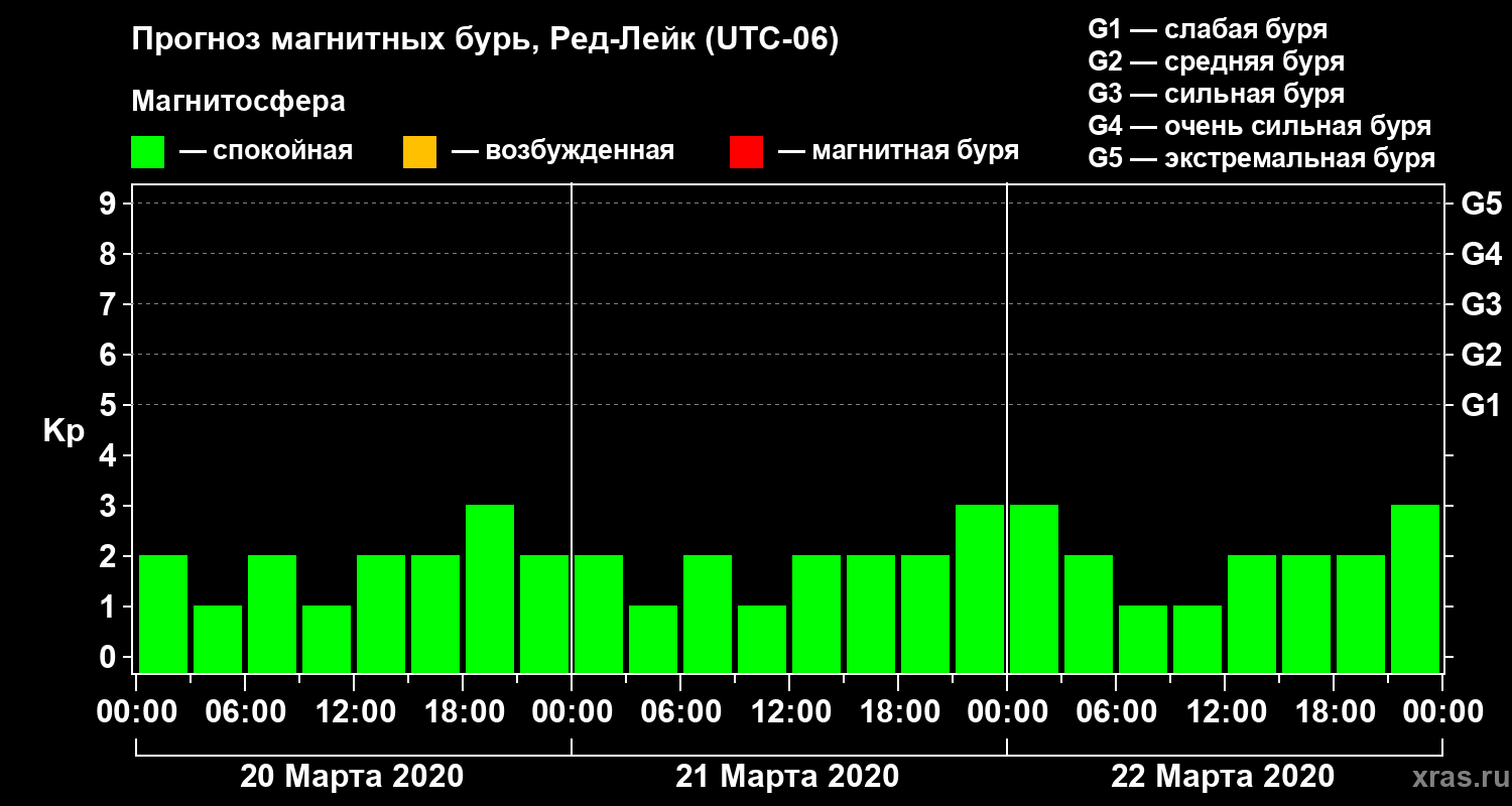 Прогноз магнитных бурь в Ред-Лейке — 20 марта 2020 года