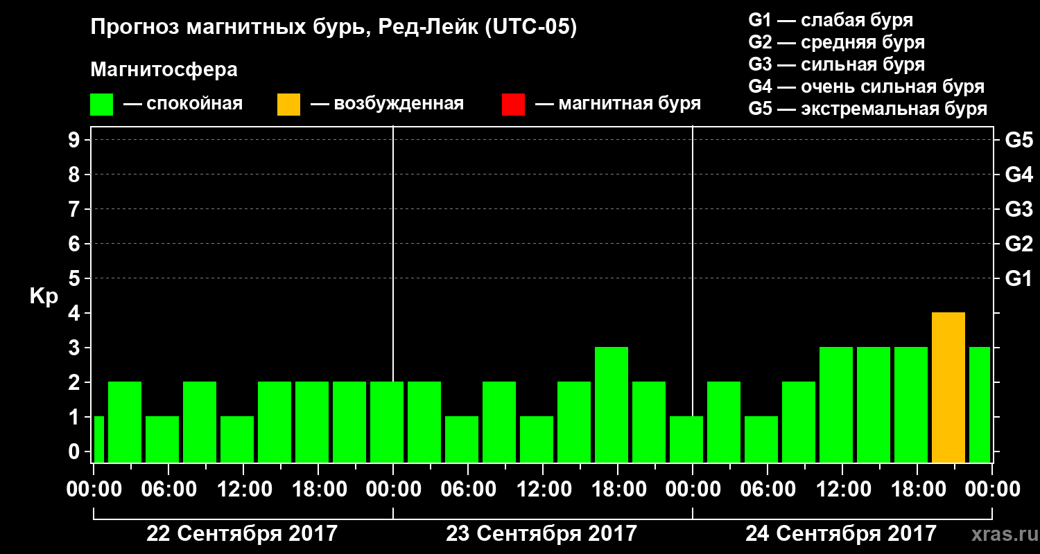 Прогноз магнитных бурь в Ред-Лейке — 22 сентября 2017 года