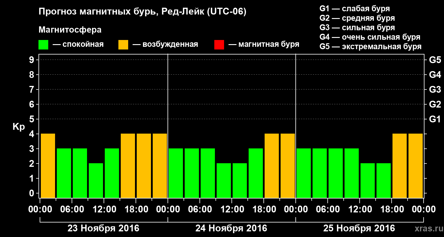 Прогноз магнитных бурь в Ред-Лейке — 23 ноября 2016 года