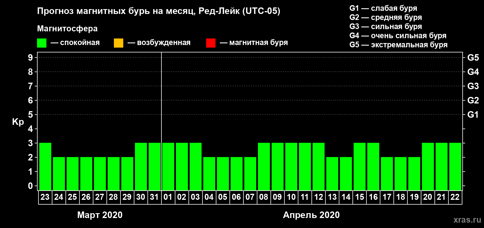 Прогноз магнитных бурь в Ред-Лейке — 23 марта 2020 года