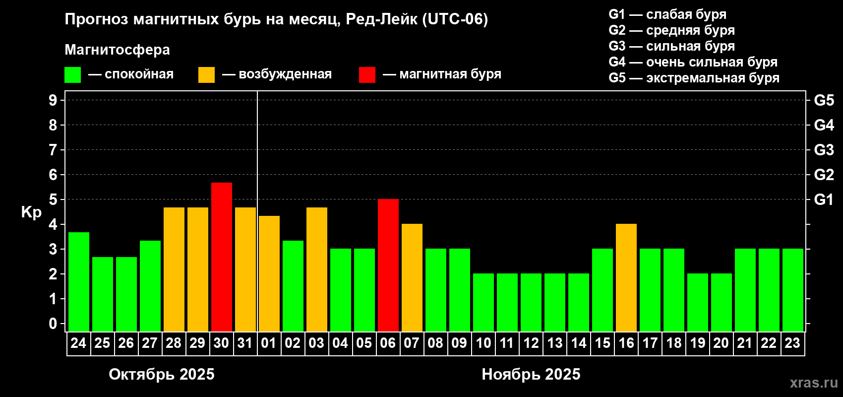 Прогноз магнитных бурь в Ред-Лейке — 24 октября 2025 года