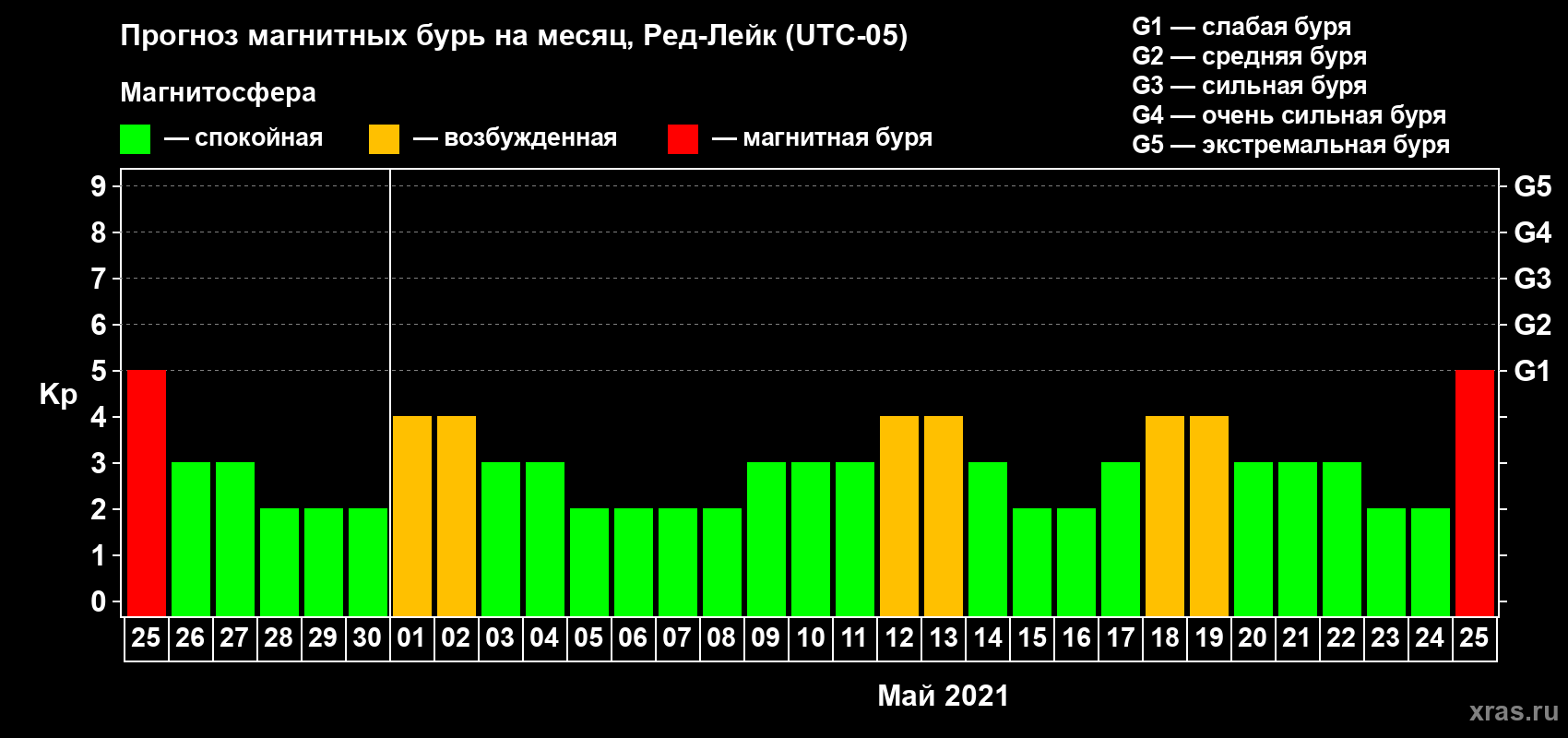 Прогноз магнитных бурь в Ред-Лейке — 25 апреля 2021 года
