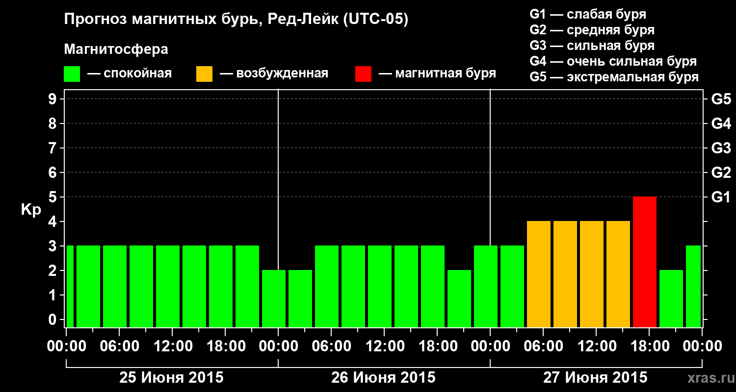Прогноз магнитных бурь в Ред-Лейке — 25 июня 2015 года