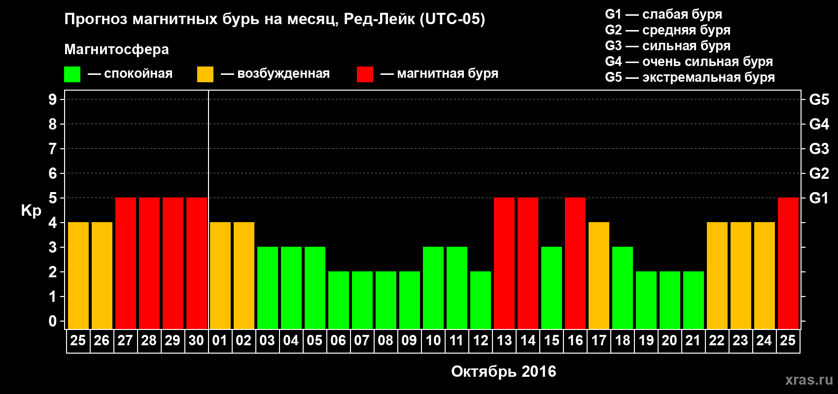 Прогноз магнитных бурь в Ред-Лейке — 25 сентября 2016 года