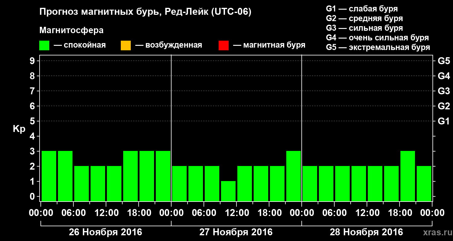 Прогноз магнитных бурь в Ред-Лейке — 26 ноября 2016 года
