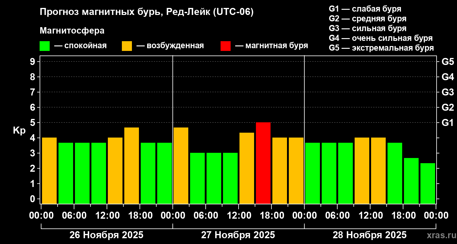 Прогноз магнитных бурь в Ред-Лейке — 26 ноября 2025 года