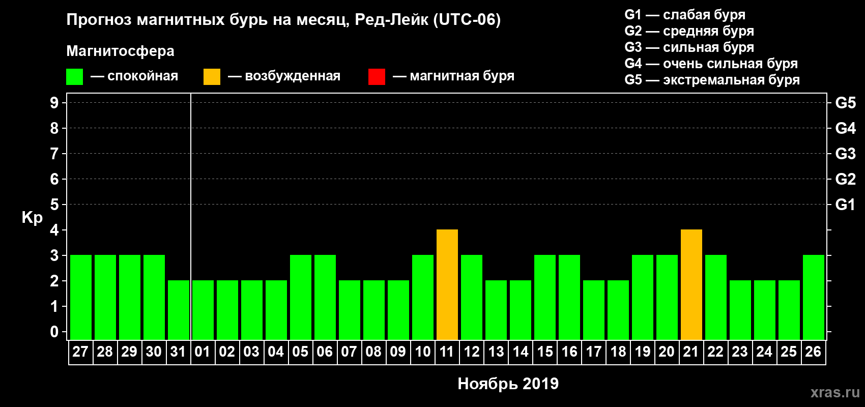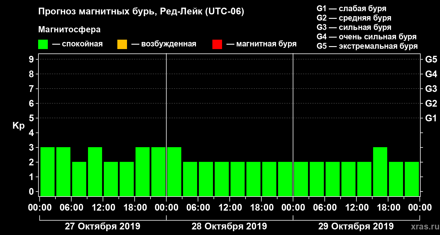 Прогноз магнитных бурь в Ред-Лейке — 27 октября 2019 года
