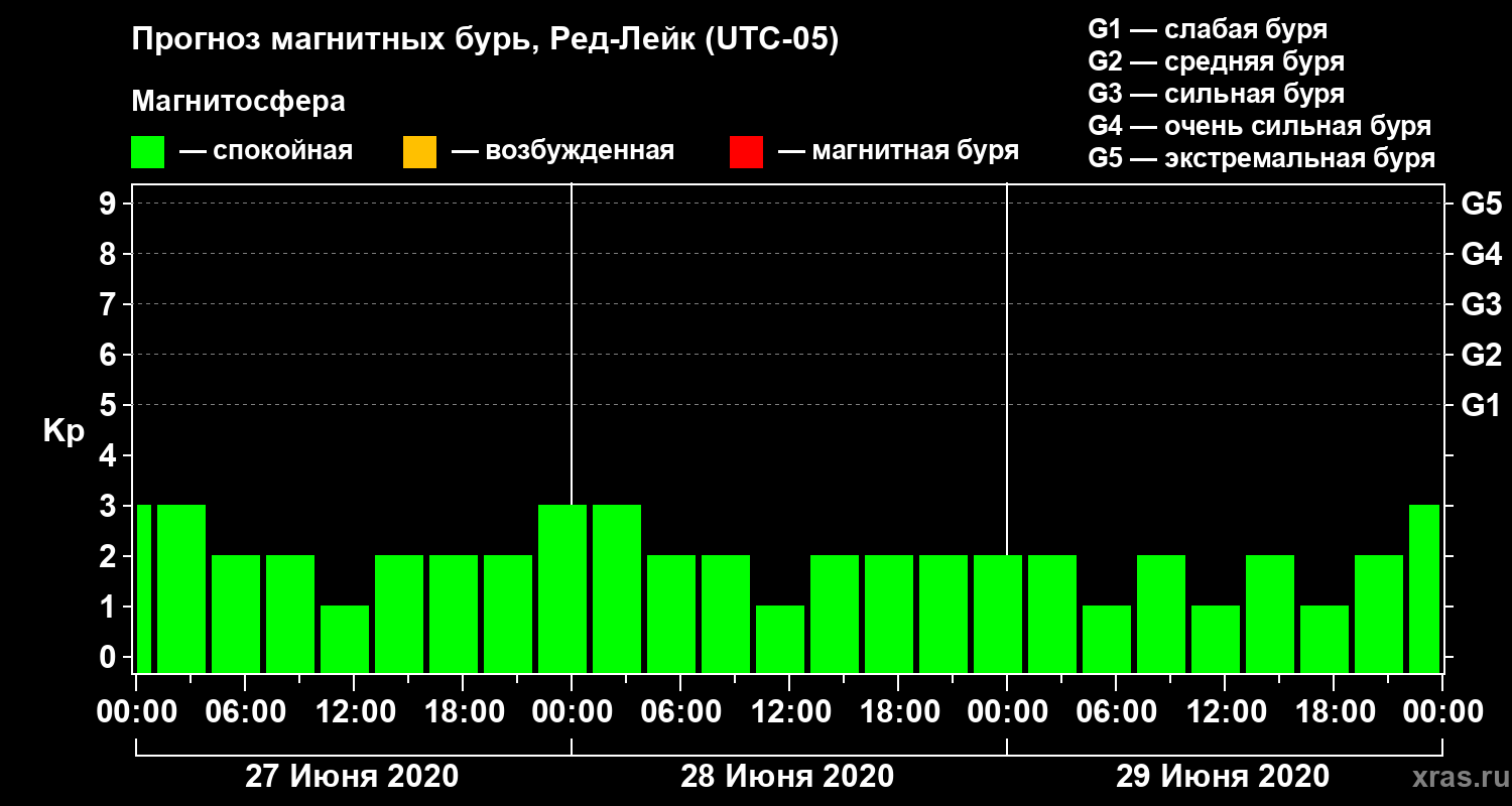 Прогноз магнитных бурь в Ред-Лейке — 27 июня 2020 года
