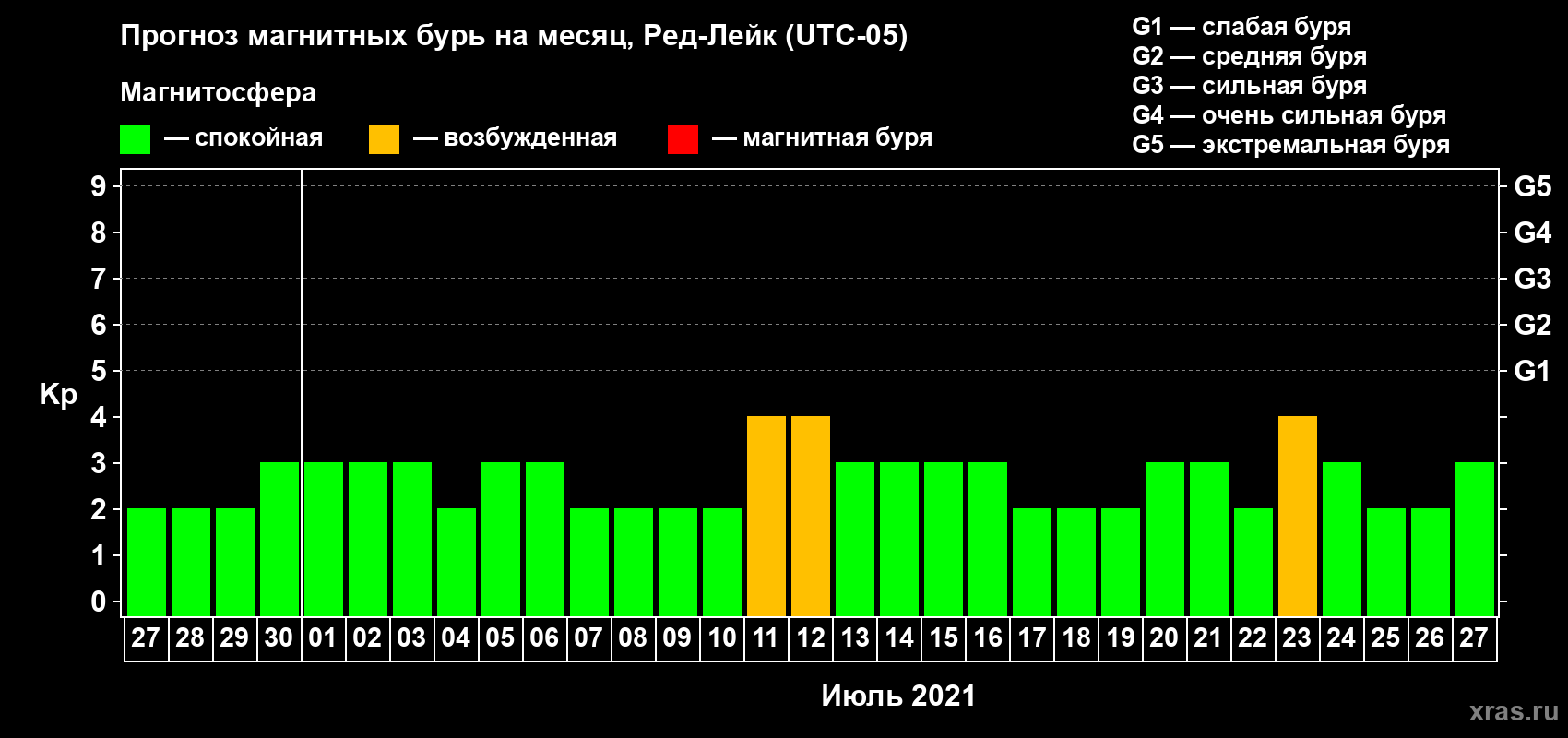 Прогноз магнитных бурь в Ред-Лейке — 27 июня 2021 года