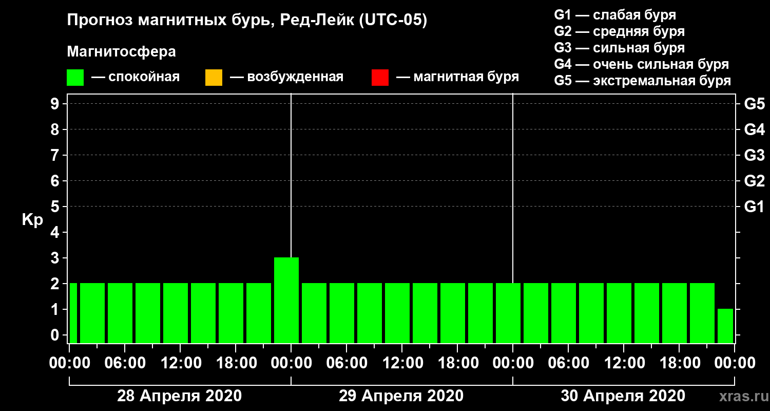 Прогноз магнитных бурь в Ред-Лейке — 28 апреля 2020 года